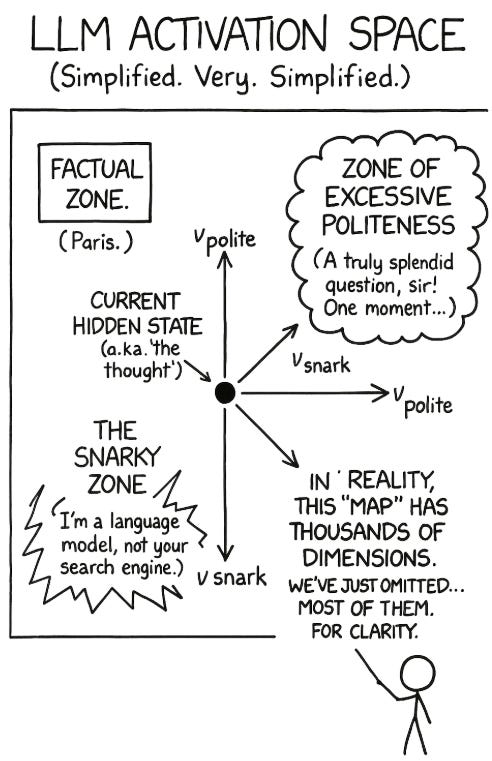 If you can find a vector for “politeness,” why not one for “factuality”? Or, more to the point, why not find the specific direction that corresponds to the model making things up?